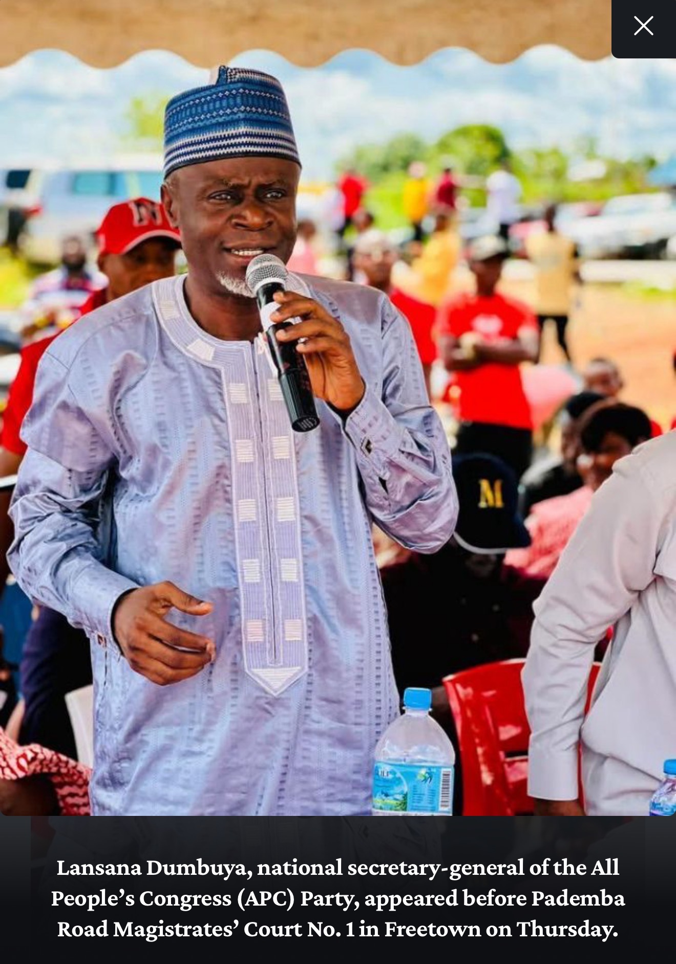 Prosecutors say the charges relate to statements made during an APC meeting held on 31 January 2026 at Attouga Stadium in Freetown’s east end. They allege Dumbuya encouraged supporters to refer to President Julius Maada Bio as a thief, citing chants including “Maada Bio Tiffy Tiffy Jankoliko”.