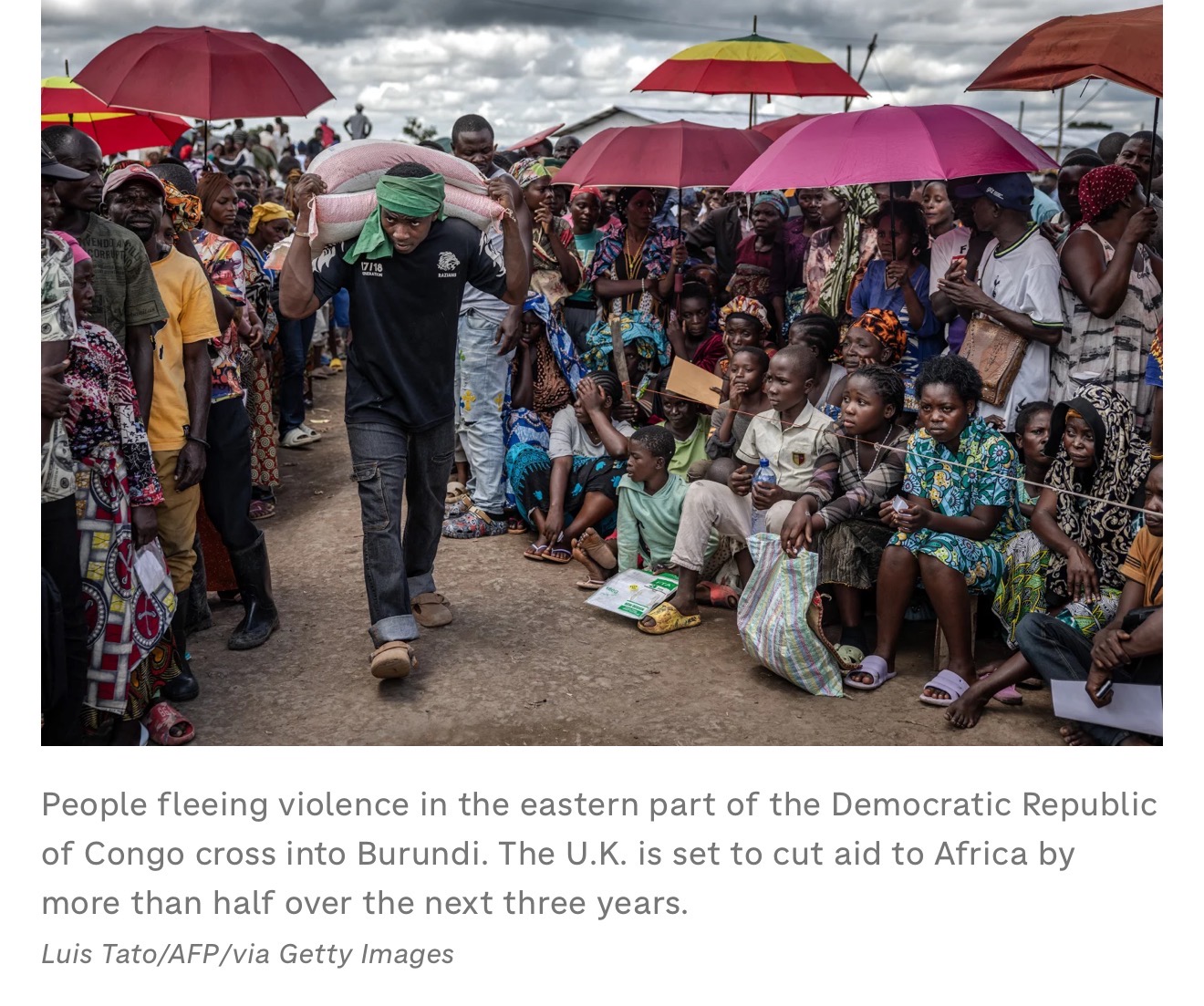 People fleeing violence in the eastern part of the Democratic Republic of Congo cross into Burundi. The U.K. is set to cut aid to Africa by more than half over the next three years.